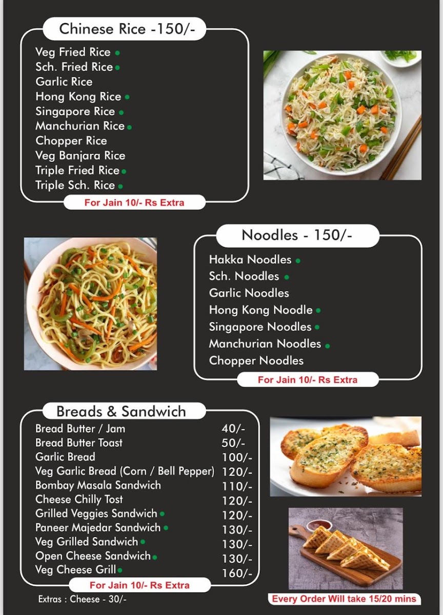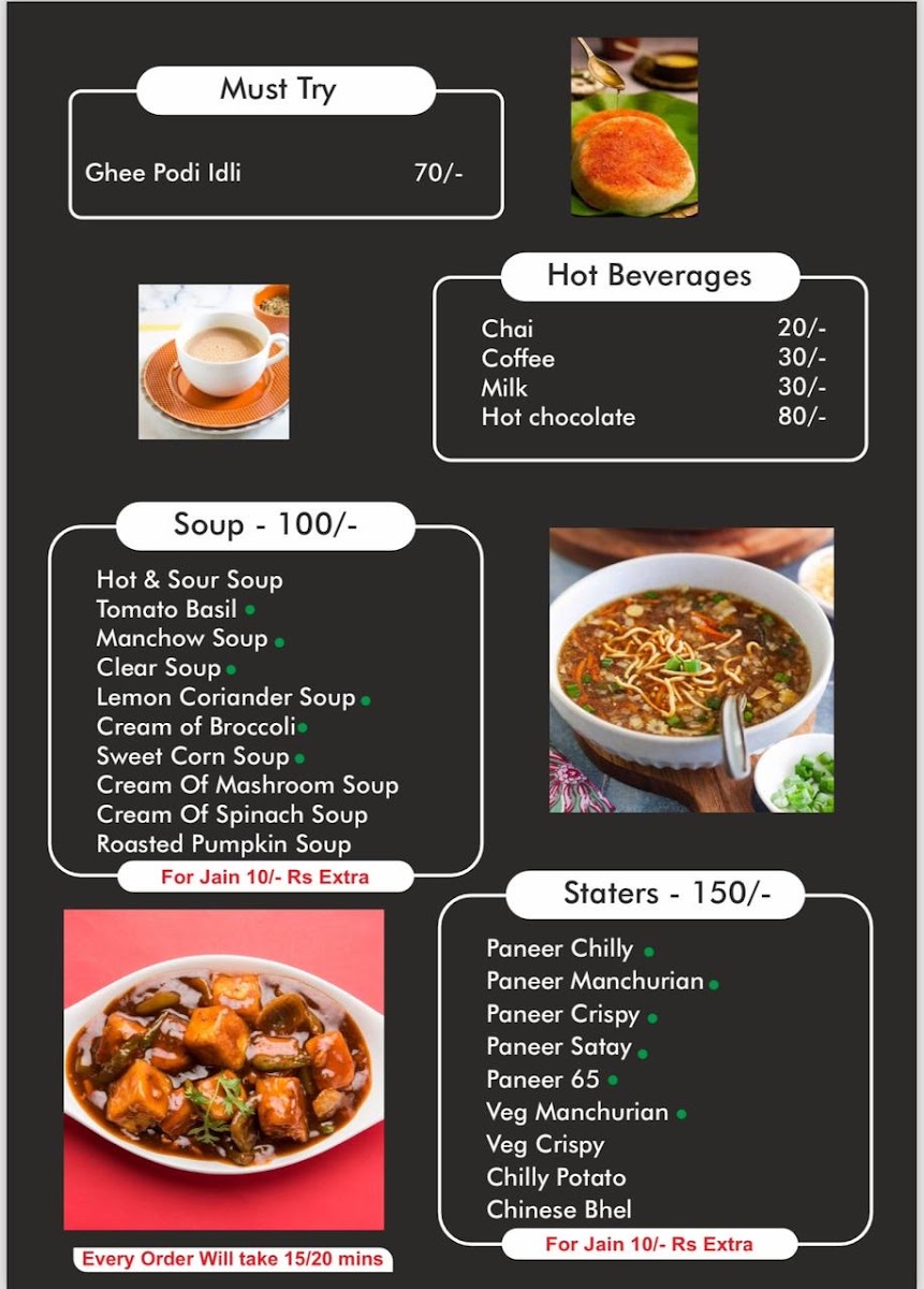 The menu showcases a delightful array of starters, especially for paneer lovers, with options like Paneer Chilly and Paneer Manchurian, each priced at ₹150. Additionally, the sides are not to be overlooked, featuring crispy French Fries and unique Momos, which are audience favorites. Customers rave about the satisfying portions and value for money, making it a sought-after destination for families and friends alike.